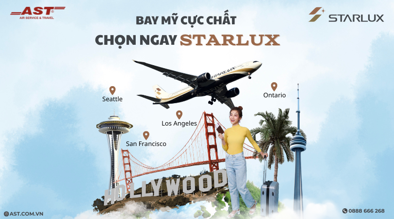 Nhanh tay đặt vé cùng AST Travel và tận hưởng ưu đãi siêu hời từ STARLUX Airlines. Thực hiện ngay kế hoạch vi vu nước Mỹ ngay thôi!