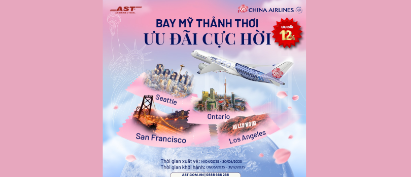 Đừng bỏ lỡ cơ hội vàng này để nhận được những tấm vé với mức ưu đãi tốt nhất đến từ hãng không 4 sao China Airlines và AST Travel!