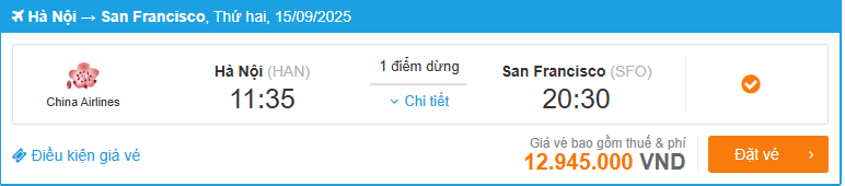 Chặng bay: Hà Nội (HAN) - San Francisco (SFO)