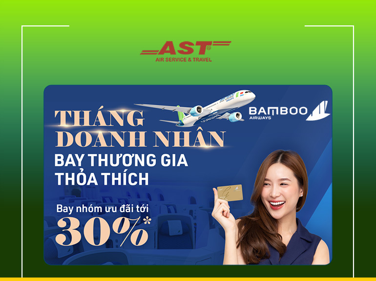 Bamboo Airways (BAV) thông báo chương trình “Chào mừng tháng doanh nhân”, với ưu đãi cực lớn giảm tới 30% giá vé khi bay cùng hãng Bamboo Airways