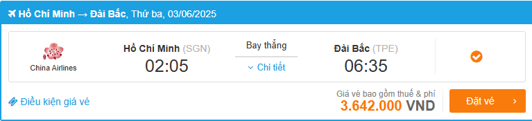 Chặng bay Tp. Hồ Chí Minh đến Đài Loan