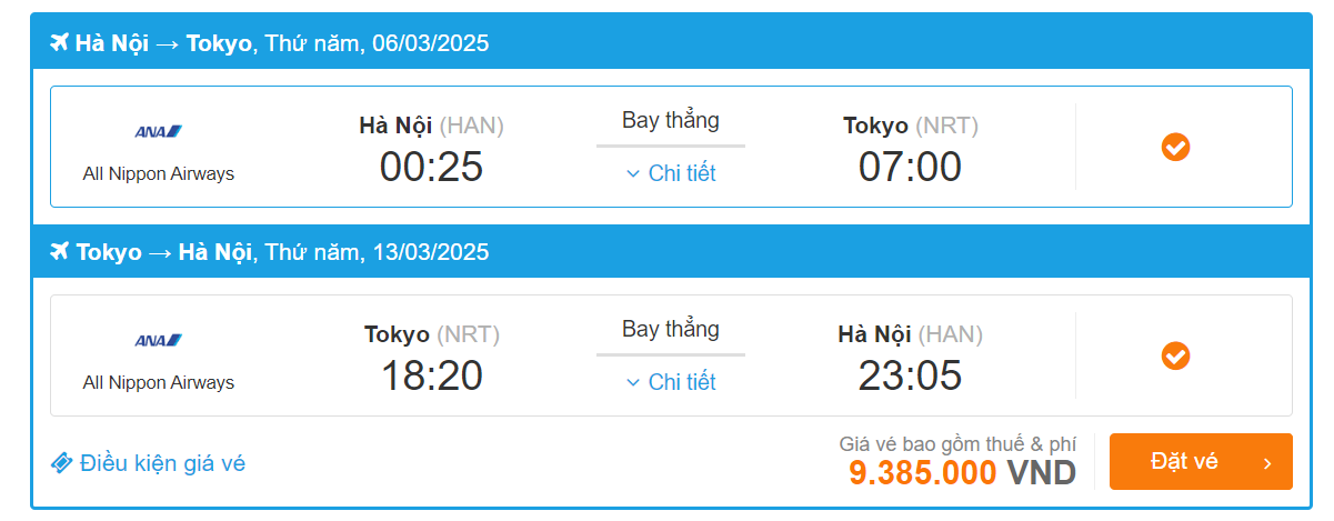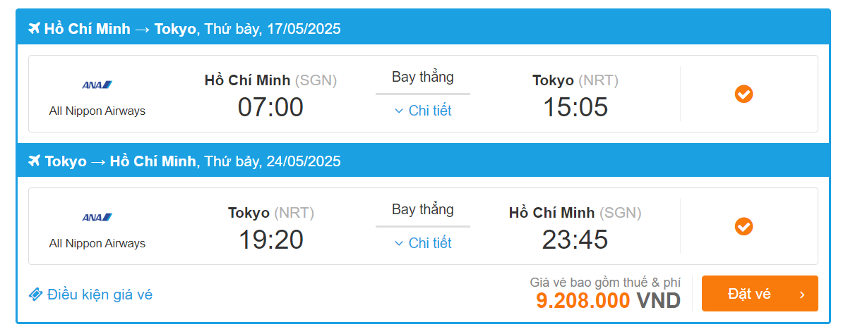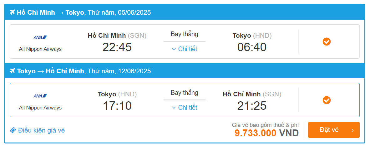 - Chặng Tp.Hồ Chí Minh (SGN) đến Narita (NRT)/ Haneda (HND): 14/03/205 - 31/07/2025