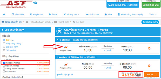 Giá vé khuyến mãi của Philippines Airlines đã hiển thị trên website AST.COM.VN. Đặt mua ngay nha bạn ơi!