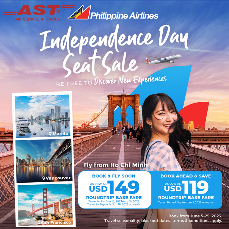 Nhân dịp kỷ niệm lần thứ 125 Ngày Tuyên bố Độc lập của Cộng hòa Philippines (12/6/1898 - 12/6/2023). Philippine Airlines ưu đãi giá vé máy bay đặc biệt trên các chuyến bay từ Hà Nội đến Philippines và nhiều điểm đến khác!
