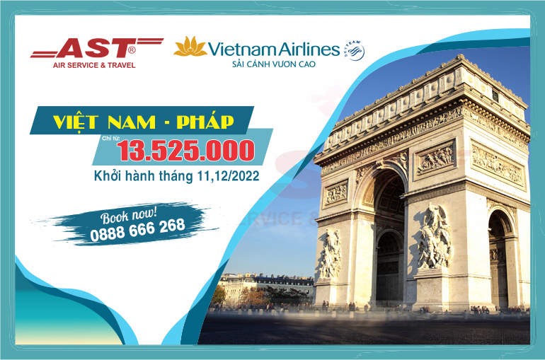 Vietnam Airlines tăng tần suất bay trên đường bay Paris - Việt Nam từ ngày 30/10/2022 - 25/03/2023 kèm mức giá ưu đãi đặc biệt chỉ từ 13.525.000 VND/chiều (đã bao gồm thuế, phí) khởi hành trong tháng 11,12/2022. Thông tin chi tiết lịch bay như sau: