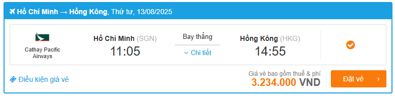 Chặng bay Tp. Hồ Chí Minh (SGN) - HongKong (HKG)