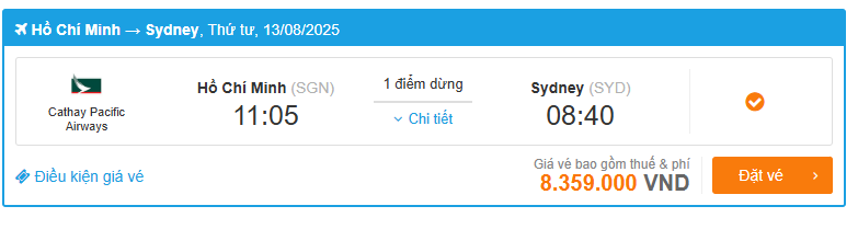 Chặng bay Tp. Hồ Chí Minh(SGN) - Sydney (SYD)