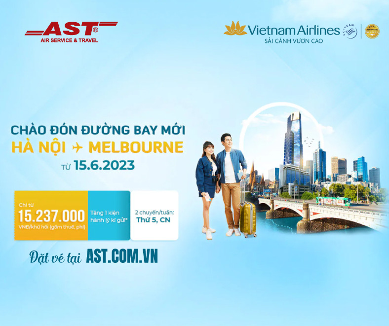 Nhằm đem đến lựa chọn tiện nghi và tiết kiệm thời gian nhất cho Quý khách trên hành trình đến Úc, Vietnam Airlines chính thức khai trương đường bay thẳng từ Hà Nội đến Melbourne từ ngày 15/06/2023.
