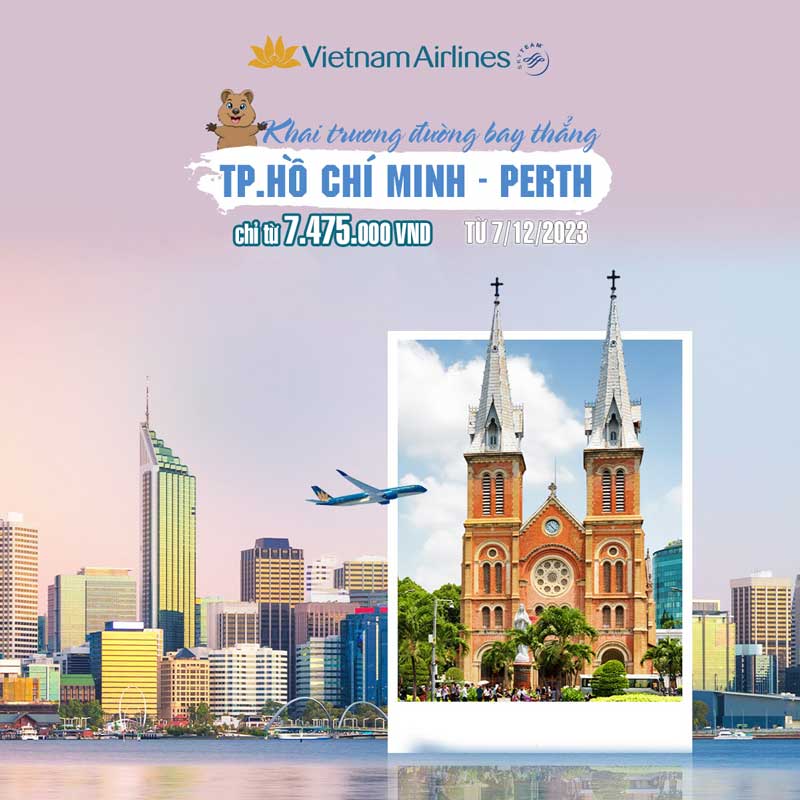 Nhân dịp này, Vietnam Airlines triển khai giá vé đặc biệt hấp dẫn trên các chuyến bay khứ hồi từ TP. Hồ Chí Minh đi Perth chỉ từ 465 USD (tương đương 11.278.000 đồng*) đã bao gồm thuế phí.