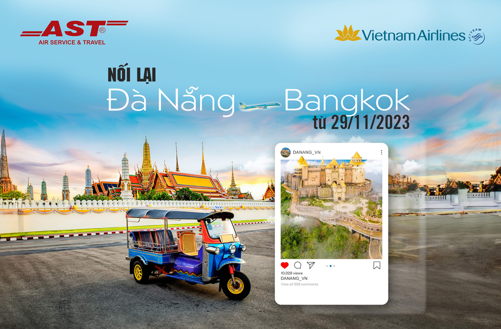 Cộng đồng Đà Nẵng hãy sẵn sàng lên kế hoạch du lịch Thái Lan! Vì Vietnam Airlines sẽ mở lại đường bay thẳng giữa Đà Nẵng và Bangkok (Sân bay quốc tế Don Mueang) và từ ngày 29/11/2023.