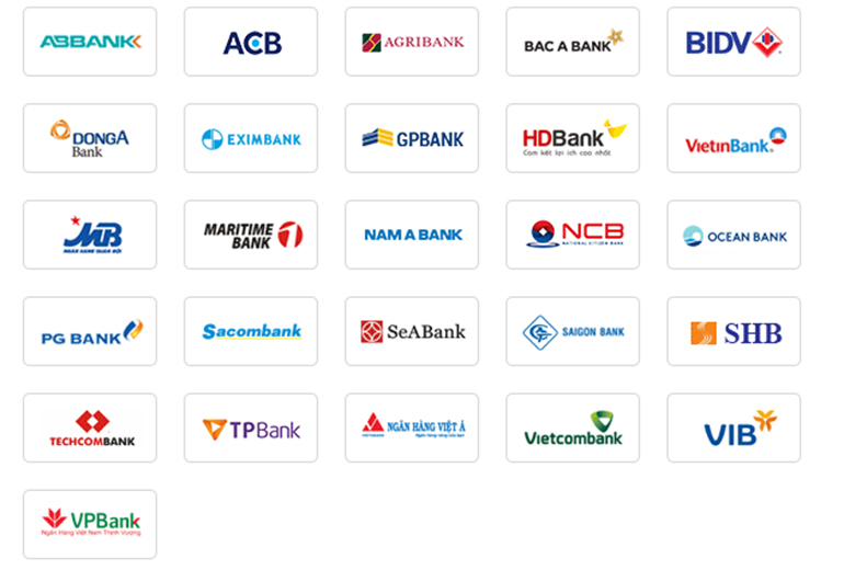 Khách hàng có thể chọn hình thức chuyển khoản theo danh sách các ngân hàng sau: