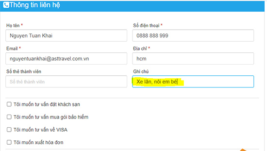 Nhân viên AST sẽ hỗ trợ cho bạn khi bạn điền các yêu cầu vào bảng trong quá trình đặt vé