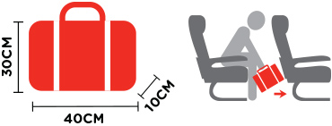 - Bạn chỉ được phép mang một kiện hành lý xách tay lên máy bay có kích thước không vượt quá 56cm x 36cm x 23cm bao gồm tay cầm, bánh xe và túi bên hông. Kiện hành lý này phải có thể để vừa trong ngăn đựng hành lý bên trên.