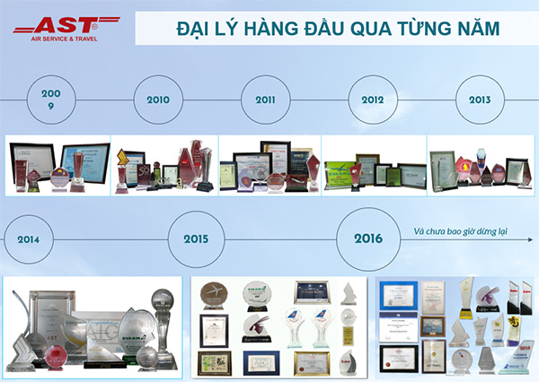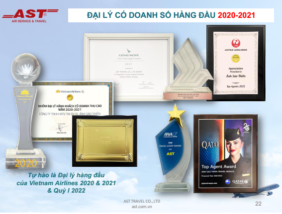 Được thành lập từ năm 1999, AST Travel đã từng bước khẳng định vị thế của mình trong ngành vé máy bay. Thành tích được thiết lập với hàng loạt giải thưởng hơn 25 năm qua: