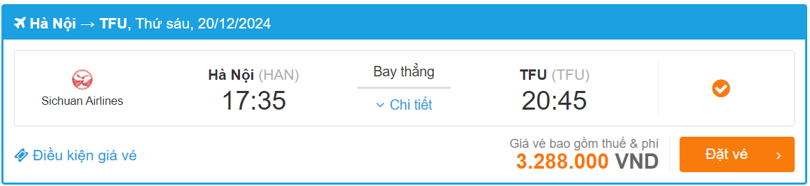 Chặng bay Hà Nội (HAN) - Thành Đô (TFU)