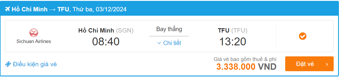 Chặng bay Tp. Hồ Chí Minh (SGN) - Thành Đô (TFU)