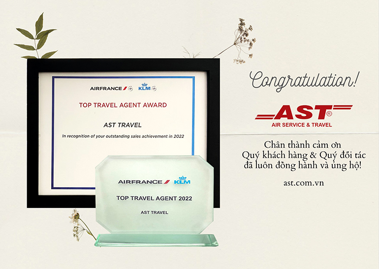 Mở bát đầu năm với giải thưởng "𝗧𝗢𝗣 𝗧𝗥𝗔𝗩𝗘𝗟 𝗔𝗚𝗘𝗡𝗧 𝟮𝟬𝟮𝟮" do HHK Air France KLM trao tặng - Hứa hẹn một năm phát triển và vươn xa hơn nữa!