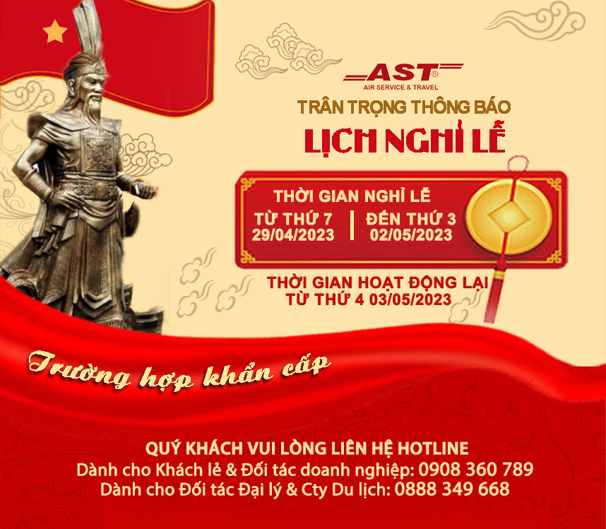 - Từ Thứ 4 03/05/2023 AST Travel sẽ hoạt động lại bình thường.
