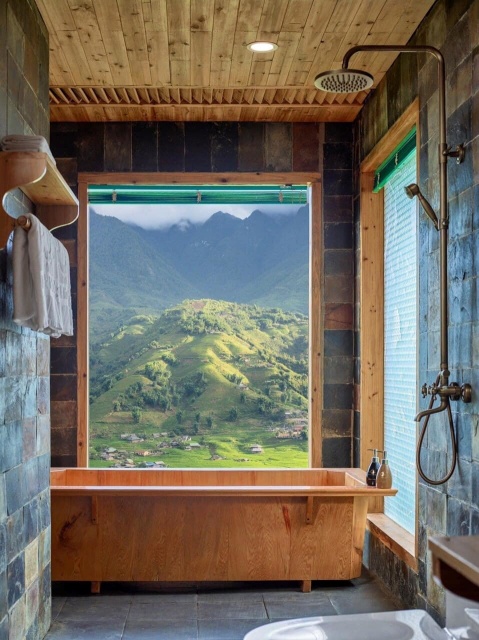 Nơi đây có bể bơi vô cực nhìn ra thung lũng cũng có ruộng bậc thang. Khu nghỉ dưỡng còn thích hợp cho hẹn hò cặp đôi khi có bữa ăn tối riêng tư trên cầu gỗ bên thác nước. Một đêm nghỉ tại đây có giá từ 6 triệu đồng.