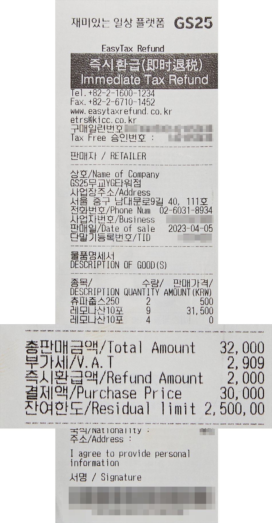 - Đơn hàng từ 30,000~50,000won và không quá 2,500,000 won trong suốt thời gian lưu trú tại Hàn Quốc