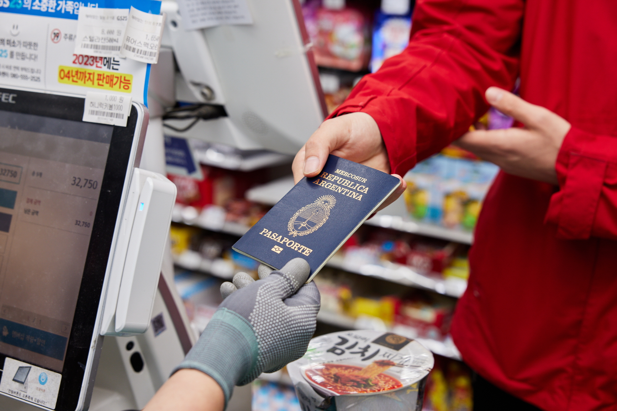 Nhân viên sẽ quét hộ chiếu trên máy chuyên dụng tại cửa hàng.