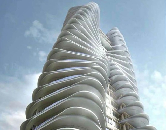 Tòa nhà nổi bật bởi thiết kế kỳ quái với nhiều đường nét uốn lượn. Công trình kiến trúc này chỉ có 2 căn hộ ở mỗi tầng. Cửa sổ bao quát từ trần đến sàn ở mỗi bên giúp căn hộ nhận nhiều ánh sáng và không khí từ ngoài với tầm nhìn 270 độ. Sân thượng, hồ bơi phun tia, spa và bể sục là một số tiện nghi tại đây.