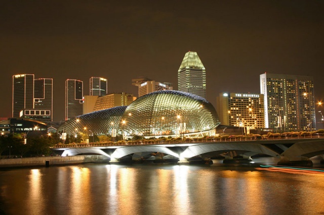 Đây là một trong số những công trình kiến trúc Singapore thu hút nhiều khách du lịch nhất được thực hiện bởi 2 công ty kiến trúc: Michael Wilford & Partners (London) và DP Architects (Singapore) với kinh phí đầu tư ước tính khoảng 1 tỷ USD. Nhà hát Esplanade chính thức mở cửa chào đón khách hàng vào ngày 12/10/2002 với sức chứa 2.000 chỗ. Bên cạnh đó còn có một phòng hòa nhạc chứa 1.600 người. Ngoài ra, nhà hát có cả thư viện, studio, trung tâm nghệ thuật biểu diễn ngoài trời, trung tâm thương mại, khách sạn và trung tâm hội nghị quốc tế.