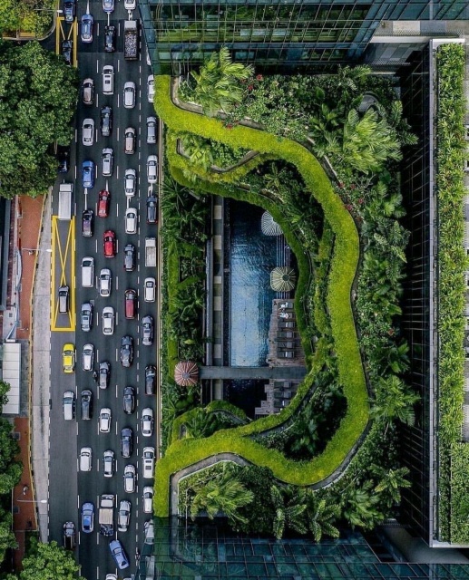 Thiết kế hài hòa với thiên nhiên và tiết kiệm năng lượng tối đa. ParkRoyal nằm ở trung tâm thành phố gần khu phố người Hoa và khu phố Clark Quay
