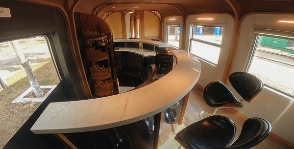 Đặc biệt, để xứng tầm 5 sao, tàu cón có hẳn 1 toa tàu để khách được thư giãn giải tri gồm: 1 quầy bar gỗ sang trọng và ghế massage thư giãn.