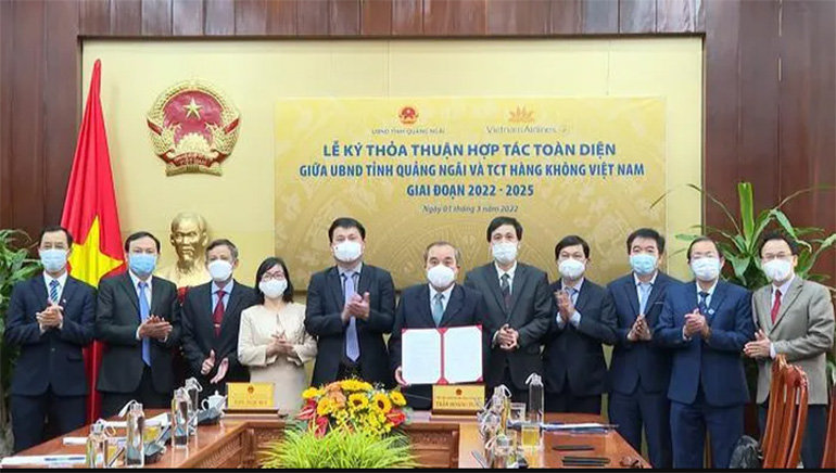 Sáng 1/3, UBND tỉnh Quảng Ngãi và Tổng Công ty Hàng không Việt Nam (Vietnam Airlines) đã ký kết thỏa thuận hợp tác toàn diện giai đoạn 2022 – 2025 (theo hình thức trực tuyến).