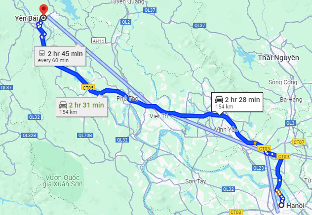 Từ Hà Nội có hai hướng lên Yên Bái. Bạn có thể thuê xe riêng để đi trọn vẹn cung ngắm núi non vùng Tây Bắc hoặc đến bến xe Bát Giáp và bắt xe đò đến Nghĩa Lộ.