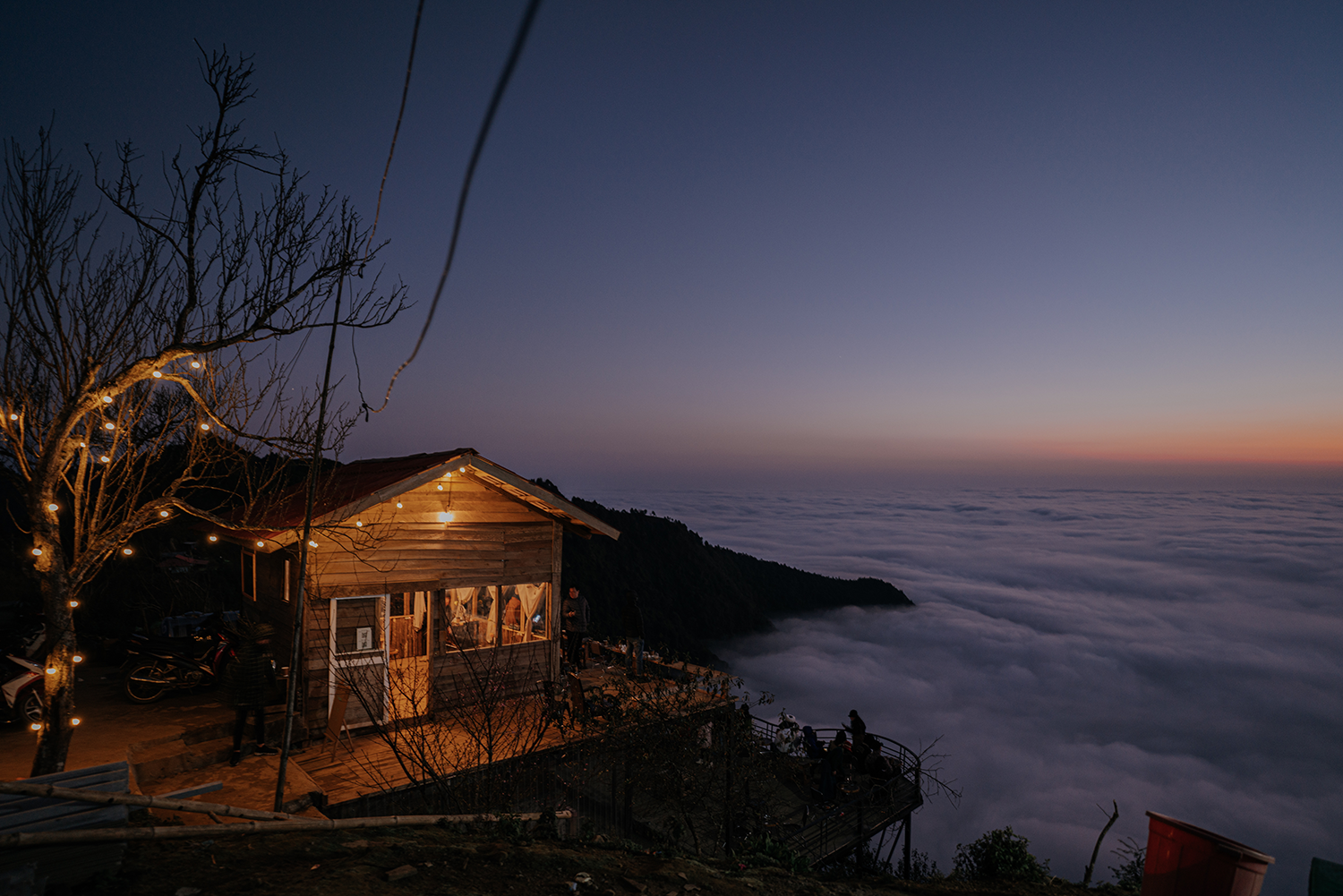 Hoàng hôn Tà Xùa nhìn từ một khu homestay. Ảnh: Nguyễn Thành Luân
