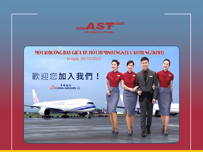Tiếp tục mở rộng mạng bay đến Việt Nam, China Airlines liên doanh cùng Vietnam Airlines mở lại đường bay giữa Tp. Hồ Chí Minh và Cao Hùng (SGN – KHH & KHH – SGN ) từ ngày 30/10/2022