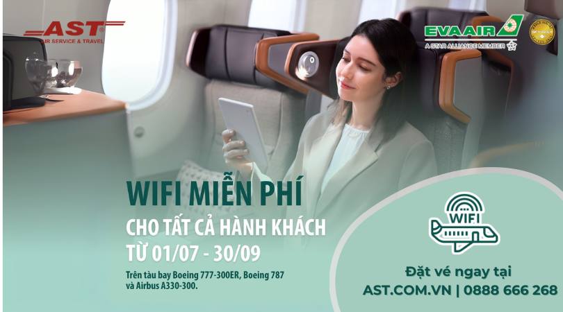 Từ 01/07 đến 30/09/2025, EVA Air triển khai chương trình khuyến mãi mùa hè cho phép mọi hành khách—bất kể là hội viên hay không—được truy cập Wi-Fi miễn phí không giới hạn để duyệt web trên các dòng máy bay trang bị Wi-Fi gồm: