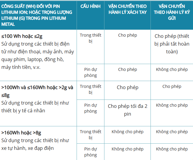 - Pin dự phòng cần được lấy ra khỏi túi xách tay và để ở nơi dễ quan sát bên cạnh hành khách.