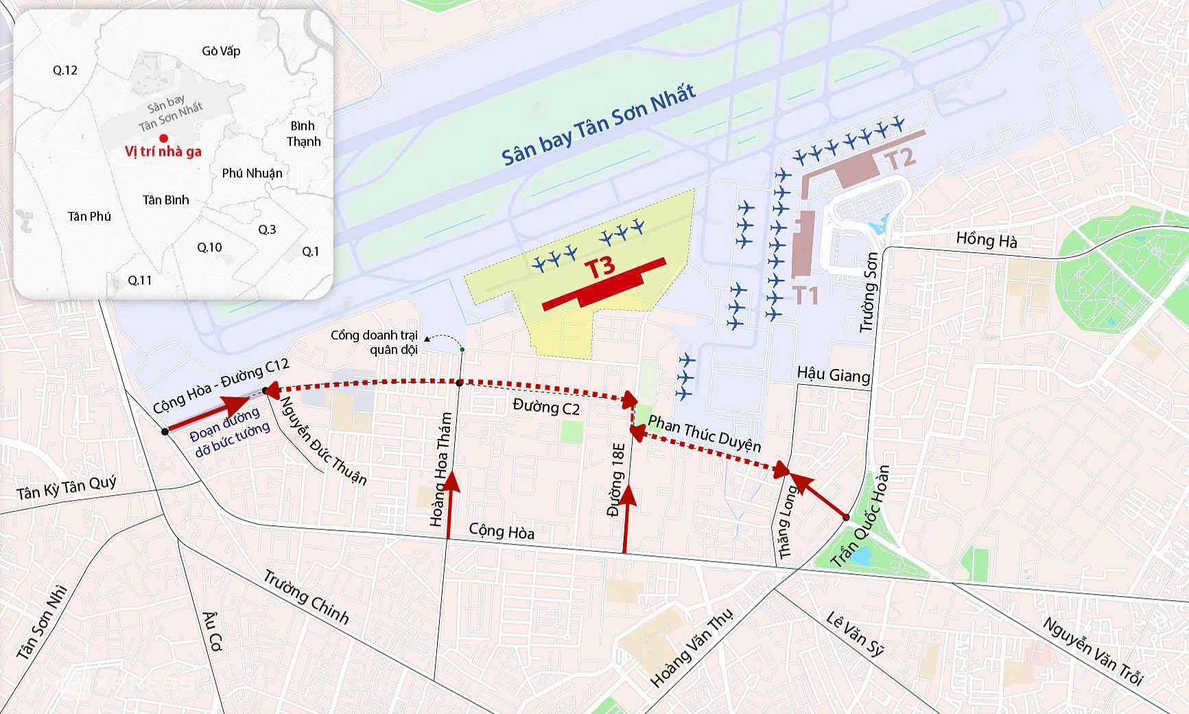 Sân bay Tân Sơn Nhất sẽ triển khai nhà ga mới T3 để phục vụ 2 hãng hàng không, đồng thời giữ nguyên hoạt động của nhà ga T1 với các hãng khác. Cụ thể: