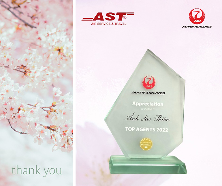 Một lần nữa, AST Travel vinh dự nhận được giải thưởng Top Agent 2022 từ hãng Japan Airlines.