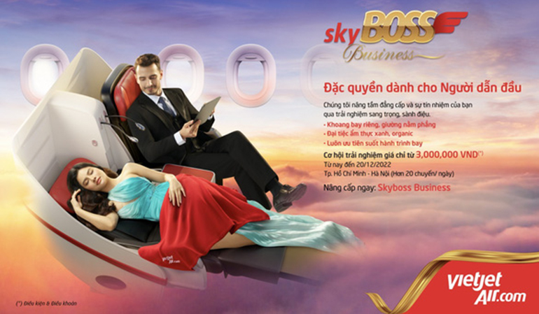 Đặc biệt không thể bỏ lỡ khi từ hôm nay cho đến 20-12-2022, hành khách dễ dàng được trải nghiệm hạng vé mới SkyBoss Business và SkyBoss, trải nghiệm phong cách "Người dẫn đầu" cùng Vietjet trên các hành trình trọn vẹn với mức giá không tưởng chỉ từ 3.000.000 VND (chưa bao gồm thuế, phí).