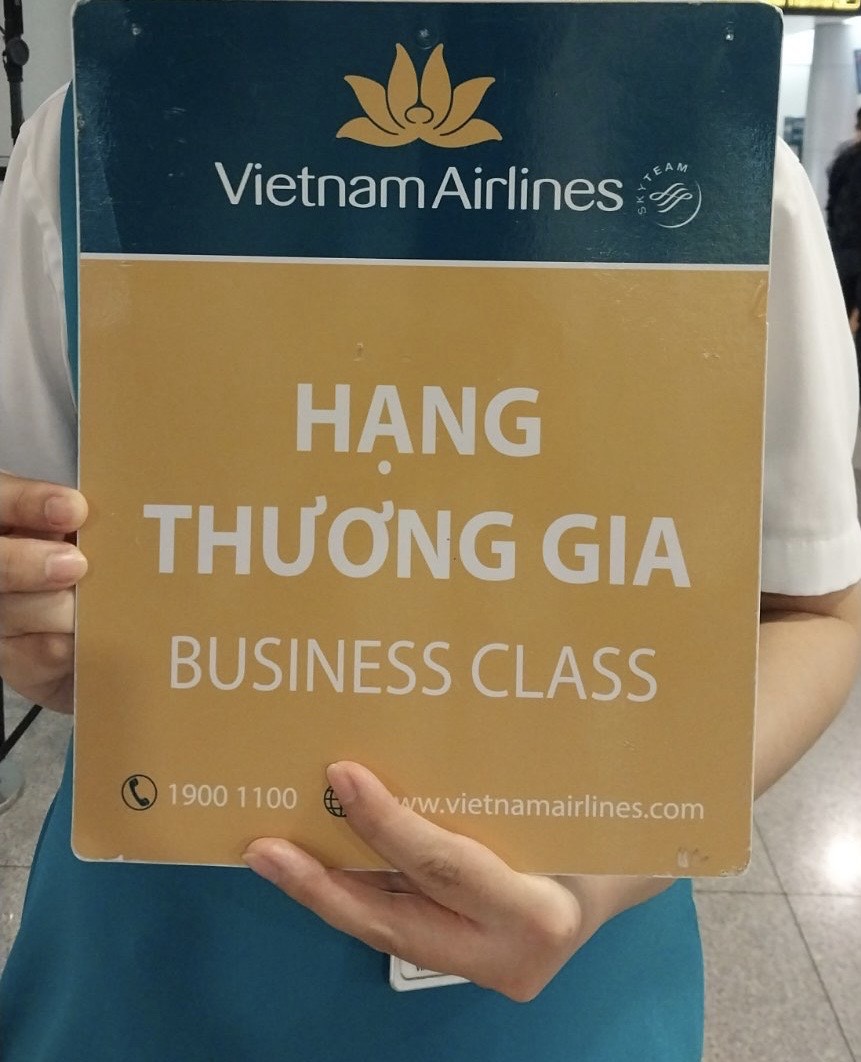 Bạn chỉ cần lưu ý các nhân viên Vietnam Airlines đang cần bảng hiệu như bên dưới, và show vé hạng Thương gia của mình ra. Nhân viên này sẽ hỗ trợ bạn thực hiện thủ tục nhanh chóng.