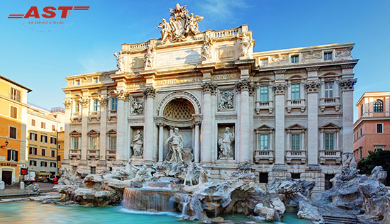 Là một trong những đài phun nước tráng lệ bậc nhất ở Rome, Trevi như một tác phẩm điêu khắc tinh xảo, với các bức tượng thần Neptune, thần Tritons, cá ngựa, thiếu nữ được chạm khắc từ đá vôi và đá cẩm thạch Carrara.