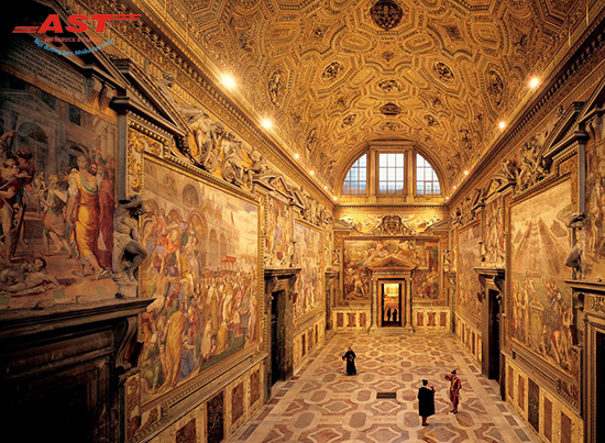 Viện bảo tàng Vatican được Pope Julius xây dựng vào thế kỷ thứ 6, nơi đây tự hào là một trong những di tích quan trọng nhất của thế giới. Viện bảo tàng Vatican nổi tiếng nhất với lối đi lên lầu hình xoắn ốc. Dưới sự bảo trợ của Pope Julius II , Michelangelo đã tiến hành sơn vẽ trần nhà thờ vào giữa năm 1508 và 1512. Ngày nay, các trần nhà thờ, đặc biệt là công trình Last Judgment, được khách du lịch đánh giá là thành tựu rực rỡ bởi những bức vẽ tuyệt mỹ của Michelangelo.
