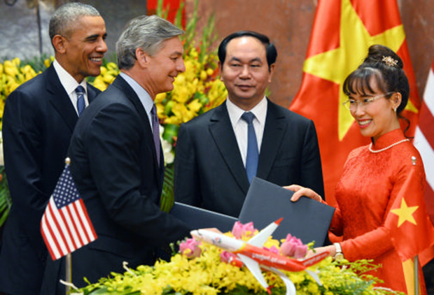 Ảnh ký kết với tập đoàn Boeing trước sự chứng kiến của Tổng thống Barack Obama