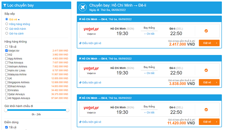 Giá vé máy bay đi Ấn Độ sẽ giao động trong khoảng 2.417.000 – 11.420.000 VND/chiều (tùy theo hạng đặt chỗ)