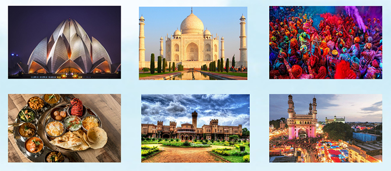 Ấn Độ là đất nước của lễ hội đa màu sắc văn hoá quanh năm. Hầu như thời điểm nào bạn đến Ấn Độ cũng có thể tham gia các hoạt động văn hoá đặc trưng của vùng đất trù phú này. Trong đó một số lễ hội lớn có thể khiến bạn say mê như: Lễ hội Ánh sáng - Diwali festival, Lễ hội màu sắc Holi, Lễ hội Ganesha, Lễ hội Ugadi ở Hyderabad...
