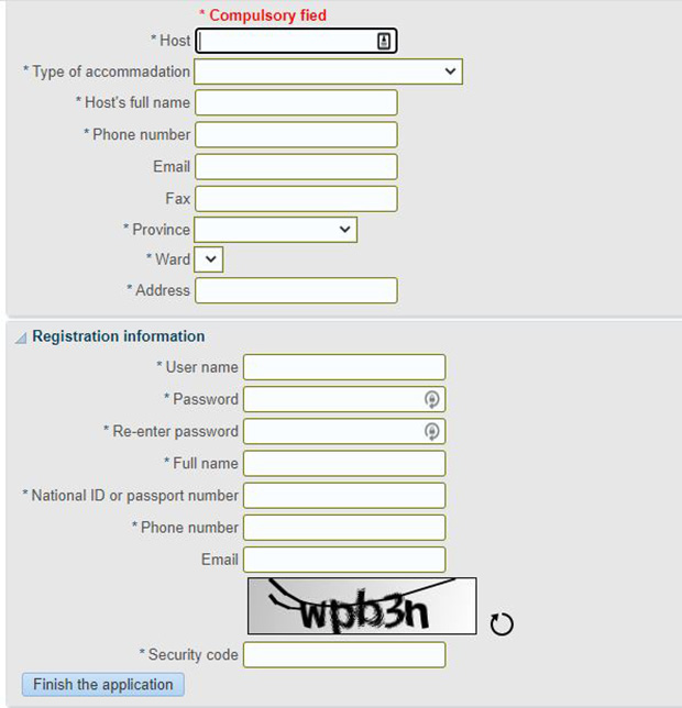 Sau đó, bạn cần phải hoàn thành biểu mẫu đăng ký với đầy đủ thông tin về chỗ ở và chủ nhà của bạn, bao gồm:
