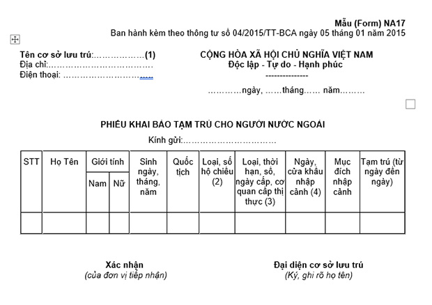 - Người nước ngoài tạm trú tại Việt Nam thông qua người quản lý cơ sở lưu trú phải khai báo tạm trú tại cơ quan Công an sở tại.