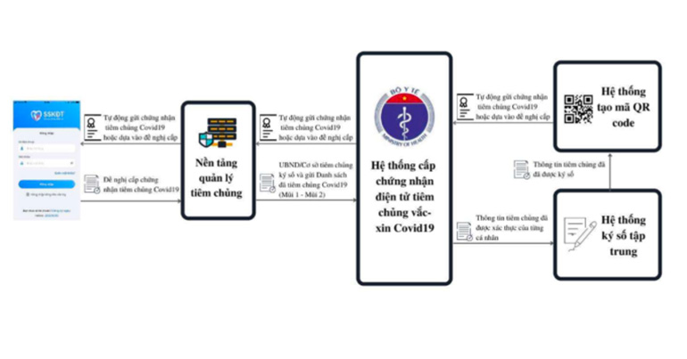 Bước ba, Cục Y tế dự phòng (Bộ Y tế) thực hiện ký số giấy xác nhận tiêm chủng vaccine Covid-19. Chứng nhận được cấp sử dụng định dạng mã QR theo tiêu chuẩn của EU.