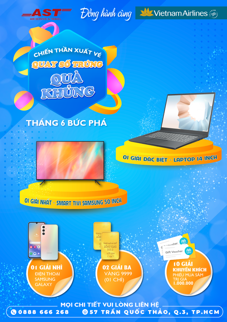 - Mỗi số vé hợp lệ của Vietnam Airlines được xuất tại AST Travel sẽ được tham gia quay số trúng thưởng từ đại lý AST Travel.