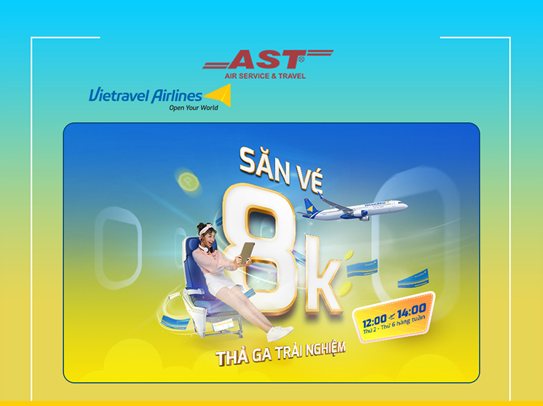 Vi vu trong nước săn vé máy bay 8K Vietravel Airlines vào khung giờ vàng các ngày trong tuần, thả ga trải nghiệm, khám phá cảnh đẹp Việt Nam.