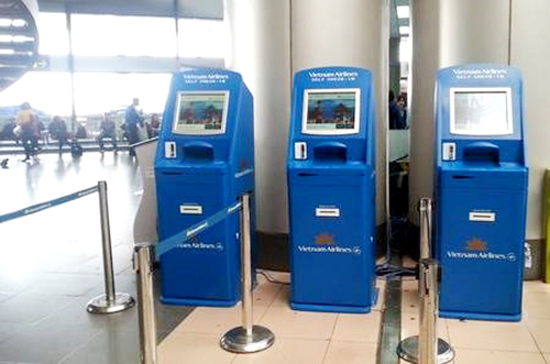 Quầy tự làm thủ tục check in tự động của Vietnam Airlines dành cho hành khách không có hành lý ký gửi. Ảnh: Vietnam Airlines.